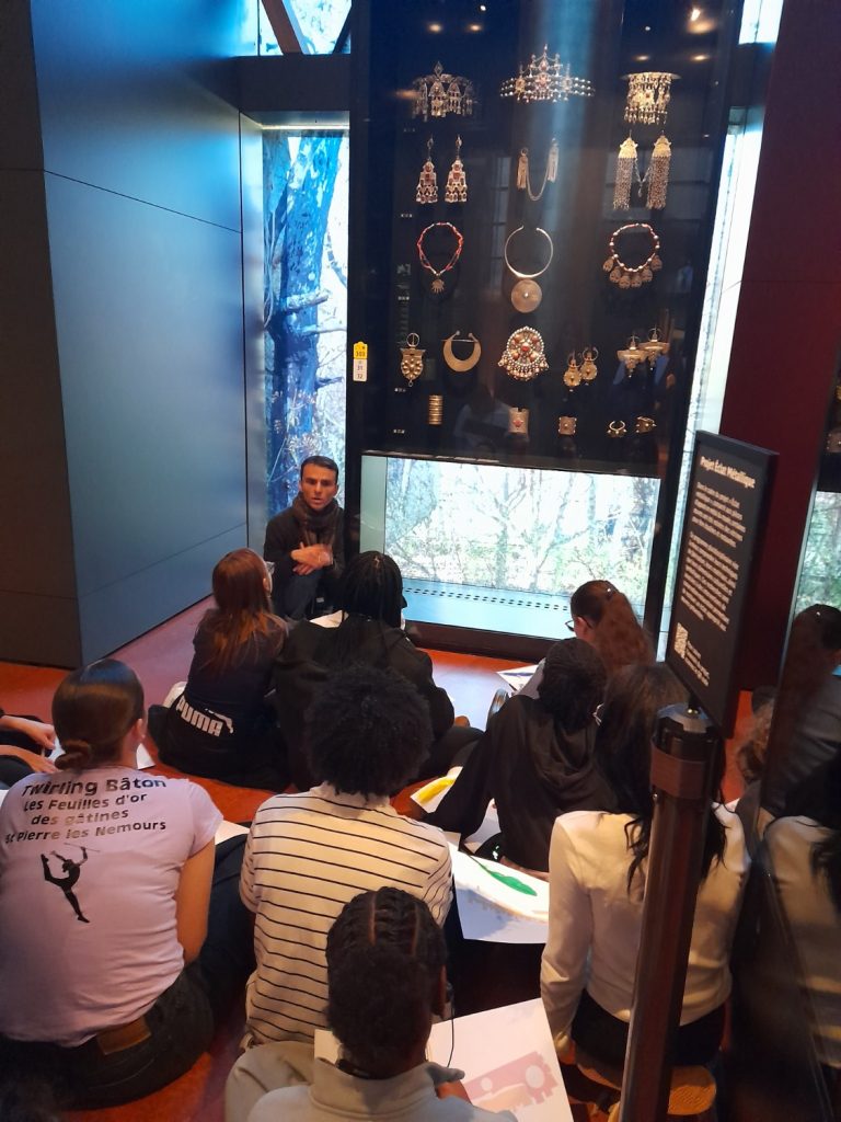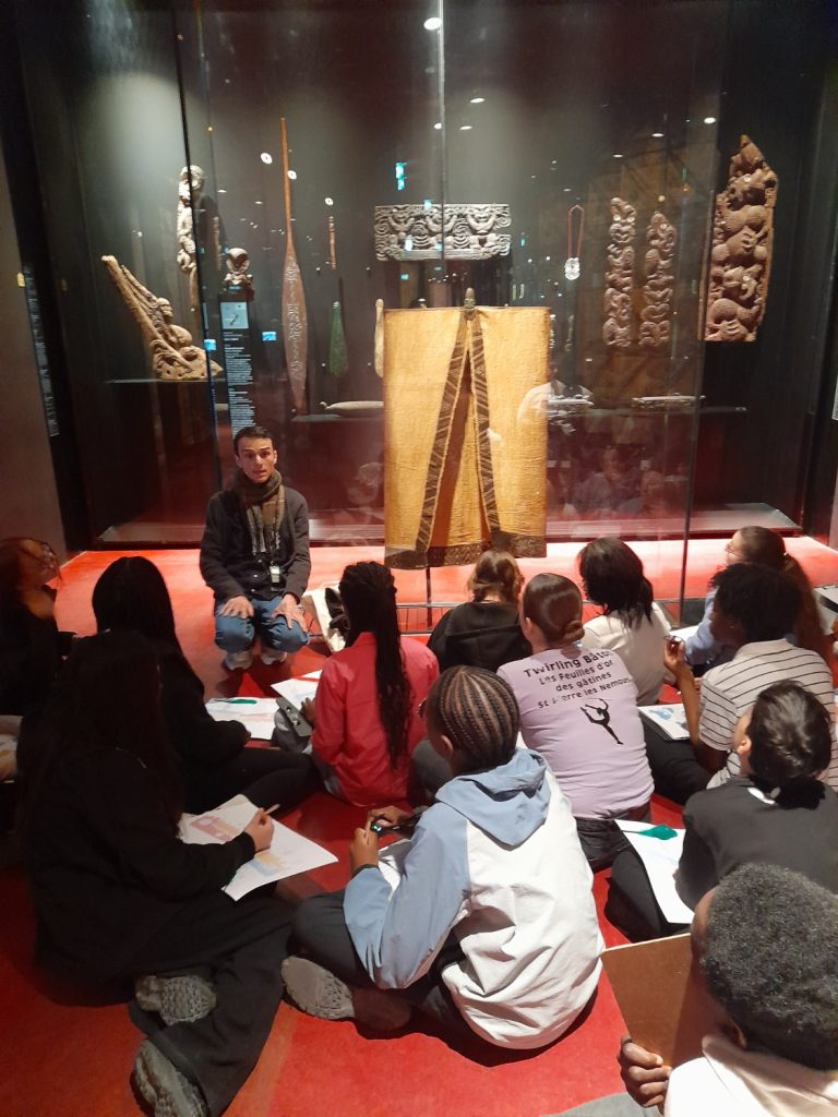 Et le clou de la journée : visite des jardins et du musée du Quai Branly sur lequel avaient déjà travaillé toutes les classes. L’atelier « carnet de voyage » mené par un guide au musée a sollicité l’ouïe, l’odorat, la vue et le toucher : de quoi satisfaire tout le monde. Nous avons pu découvrir des œuvres d’Amérique latine, d’Afrique du Nord, d’Afrique subsaharienne, d’Asie et d’Océanie. Le tour du monde en 2 heures !