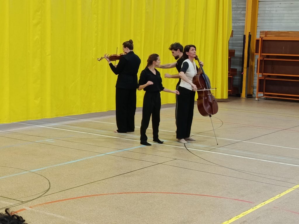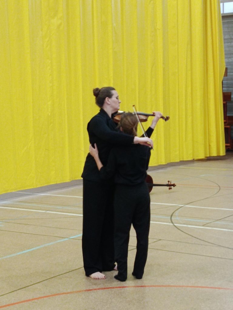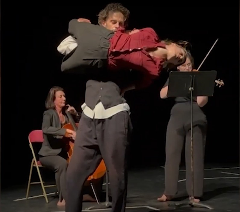Il y avait deux danseurs : Kevin et Eléonore et deux musiciennes : violon et violoncelle.