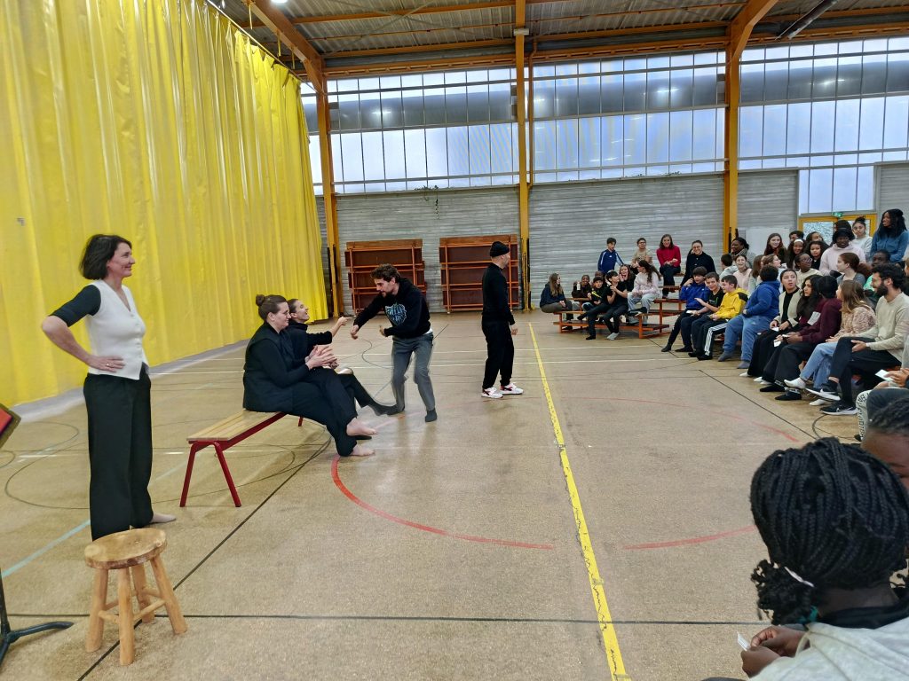 Tout a commencé au gymnase de Balzac, lundi 24 novembre, nous avons été invités par la mairie et les compagnie Art Move Concept et Dodéka à un spectacle nommé « Péripl’ici ».